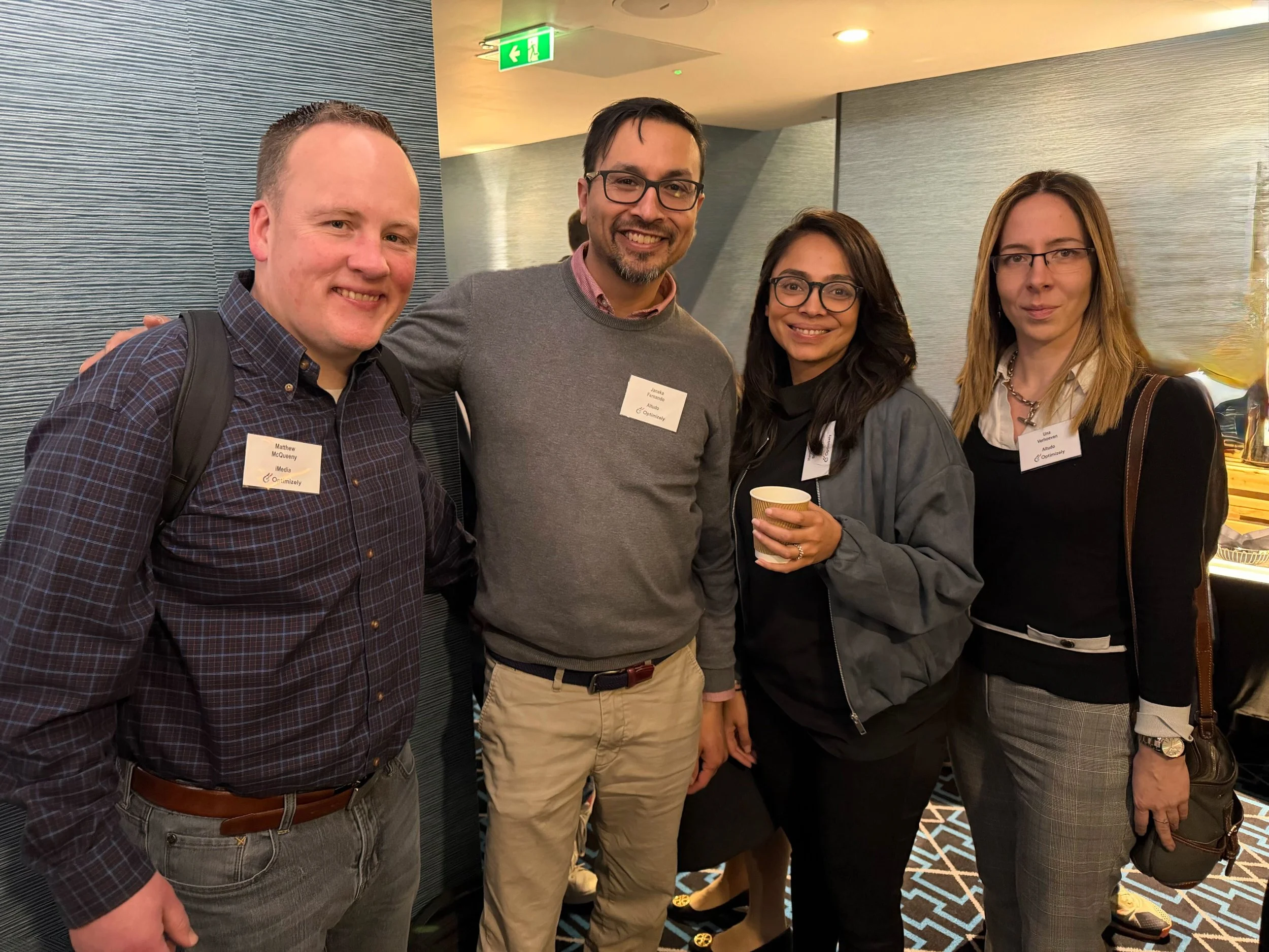Hanging out at the Optimizely partners event in London. Left to right: Matthew McQueeny alongside the team from Altudo with Janaka Fernando, Harpreet Bushell and Una Verhoeven